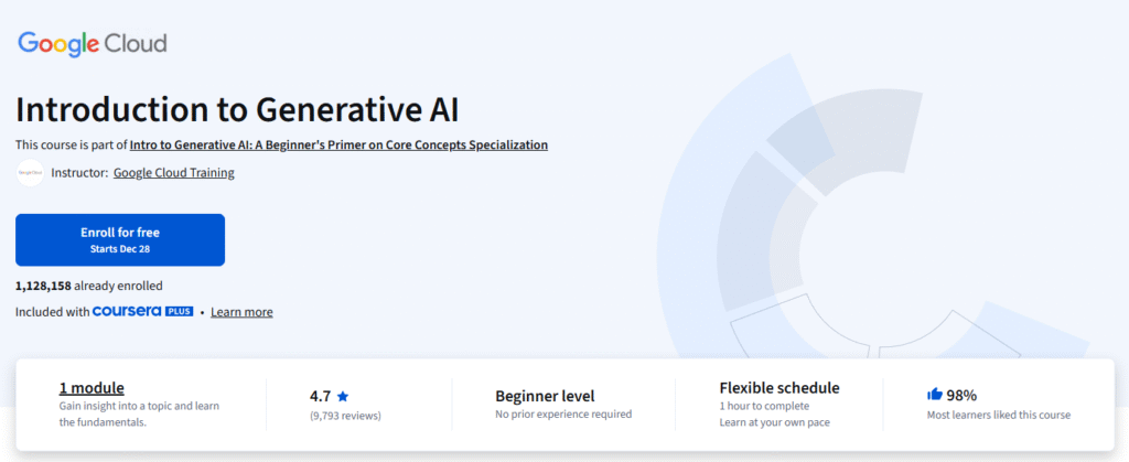 2. كورس “مقدمة في الذكاء الاصطناعي التوليدي” (Generative AI Introduction)